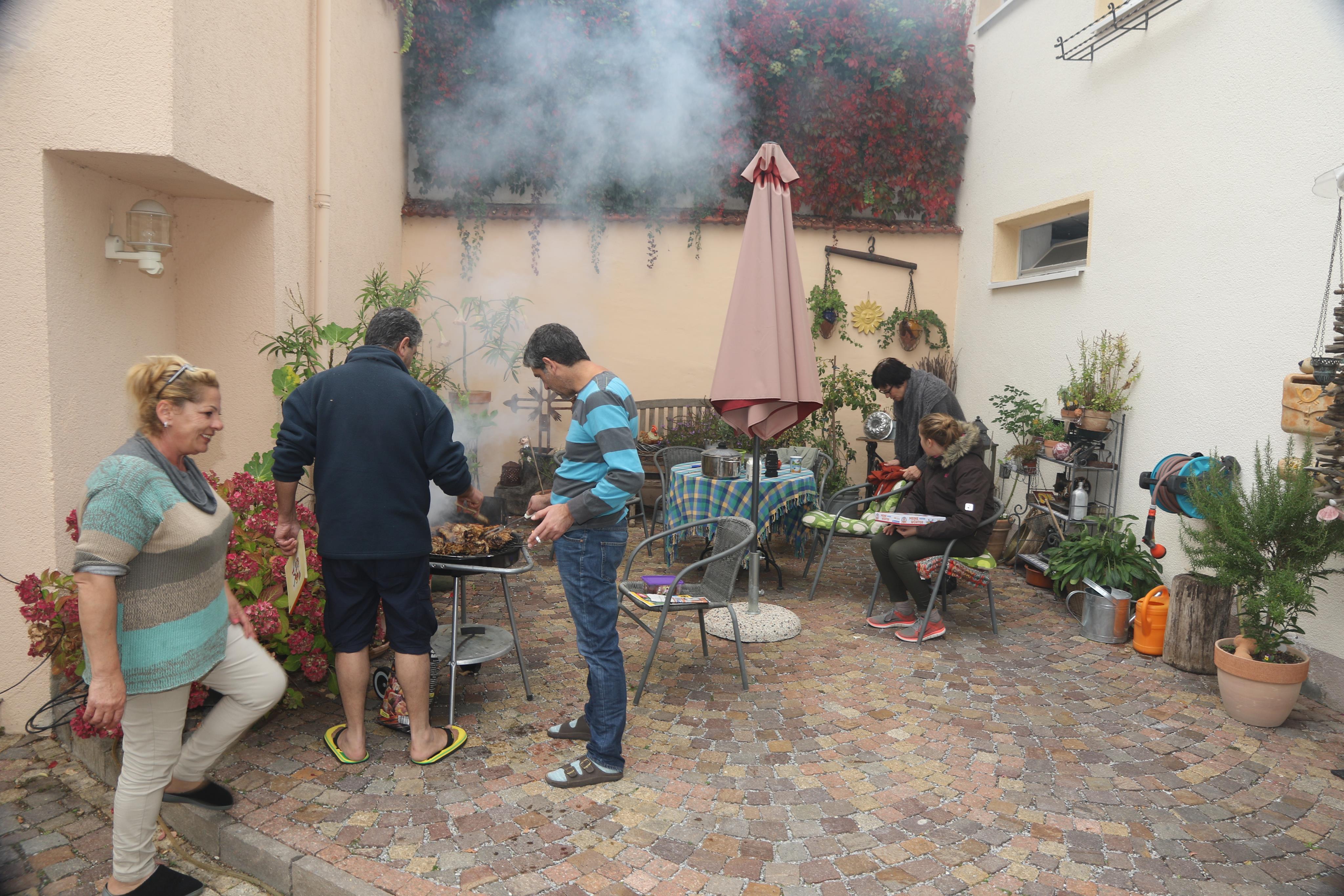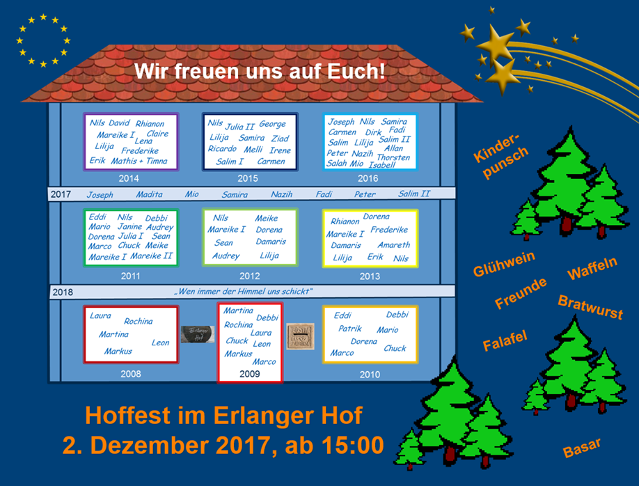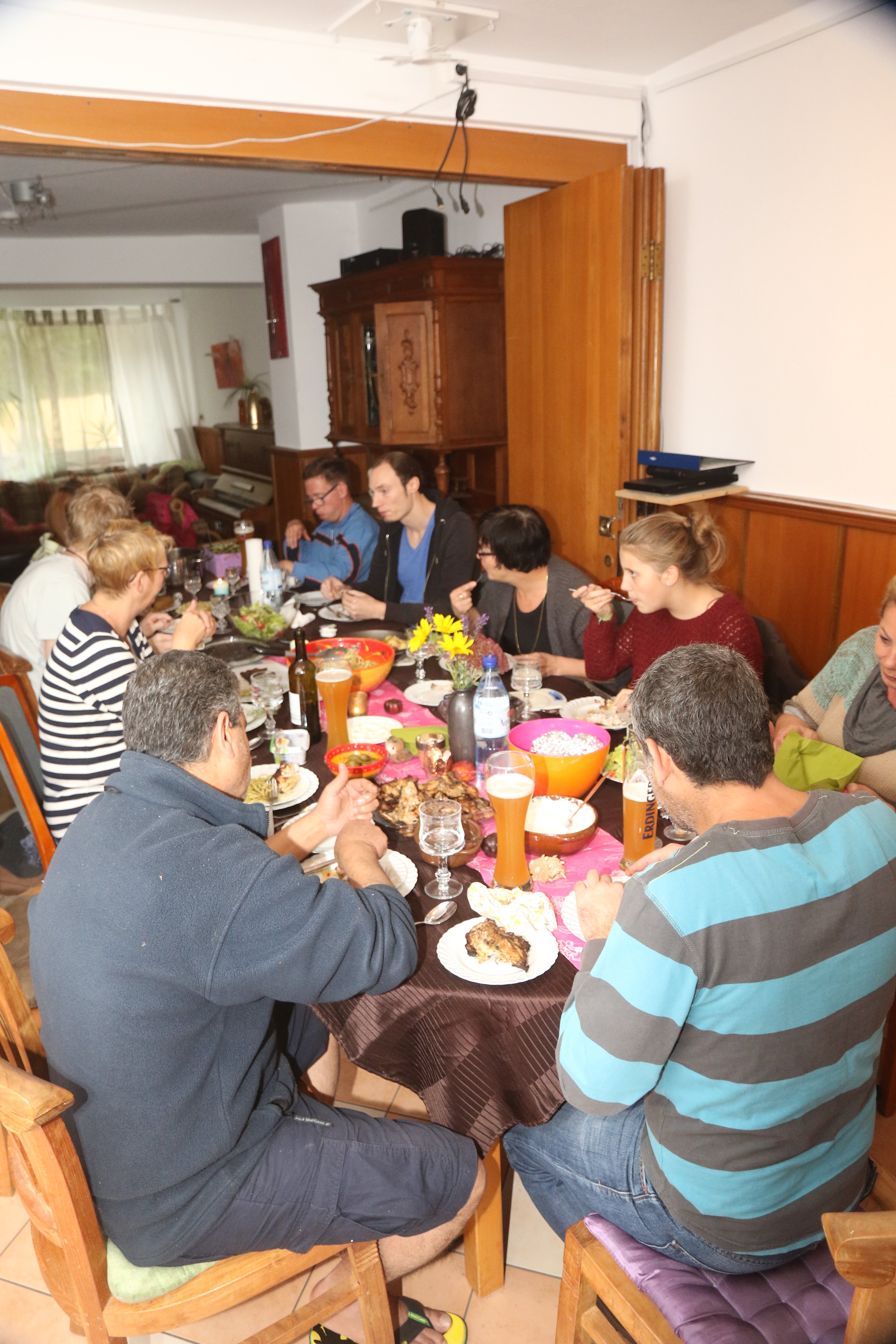 Der Erlanger Hof hat den Vorteil, dass sie aus der Massenunterkunft raus sind, aber dennoch nicht auf dem Land in einer Wohnung allein unter sich sind. Durch den Anschluss an die Bewohner und uns ist ganz schnell so etwas wie ein Zuhause entstanden. Die Gemeinschaft im Haus tut allen gut: An erster Stelle steht natürlich das gemeinsame Essen, das einen hohen Stellenwert für George und Ziad hat und man sollte gar nicht glauben wie gut 2 syrische Männer kochen können :).